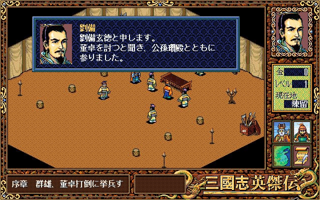 『三國志英傑伝』は、1995年に発売されたシリーズ第一作です。本作は、プレイヤーが三国志の英傑の一人、劉備となり、漢室の復興をめざして数々の激闘を繰り広げるシミュレーションRPGです。