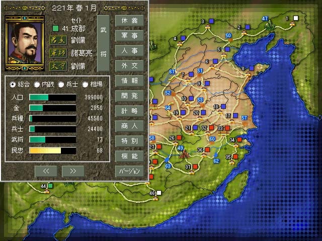 権謀術数渦巻く、三国志の世界がここに。「埋伏の毒」「駆虎呑狼」「二虎競食」などバラエティ豊かな計略が三国志の世界をリアルに再現。プレイヤーは一国の君主となり、中国大陸の統一を目指します。