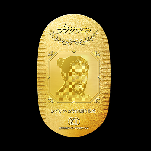 「信長の野望」シリーズの織田信長、「三國志」シリーズの曹操/劉備/孫権、「仁王」シリーズのウィリアム・アダムス―――シブサワ・コウの手掛けた代表的な作品の人物がフルカラー印刷で施された純金製小判です。3種類の中からお好みのものをお選びいただき専用の桐箱に入れてお届けします。