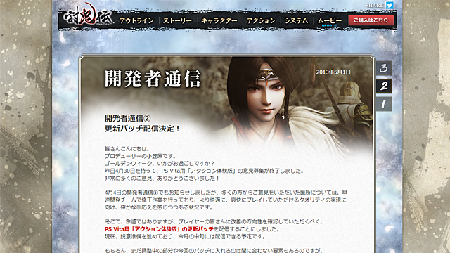 | 公式サイト 「開発者通信」 で体験版の更新パッチを案内しました。 |