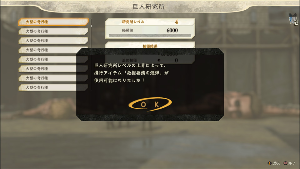 | 自動砲台 | 周囲の巨人を標的に、自動で砲撃を行う | 爆撃拠点 | 攻撃を受けると爆発し、周囲の巨人にダメージを与える |