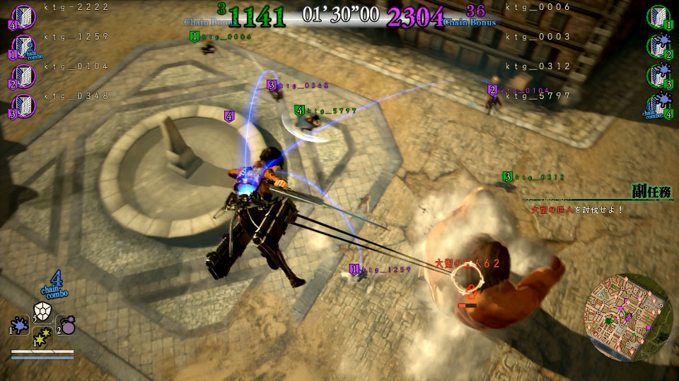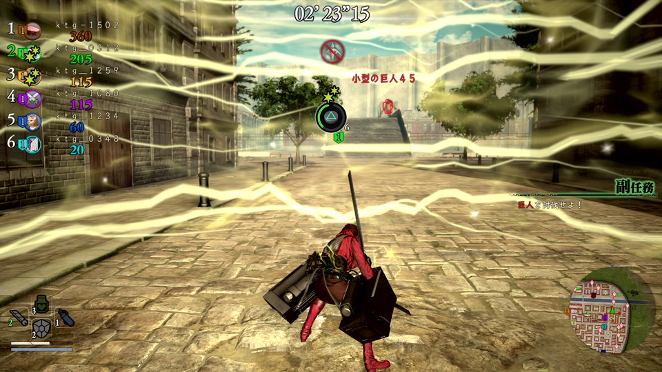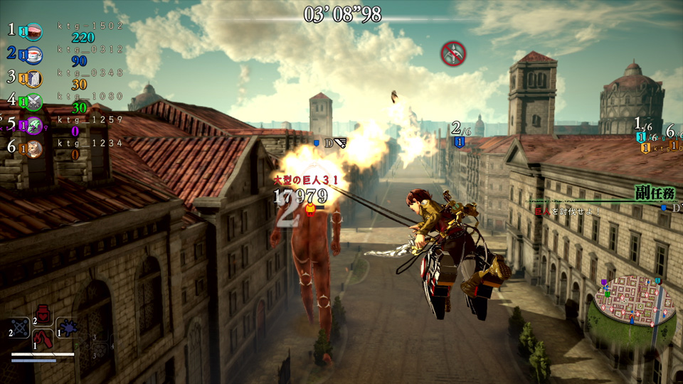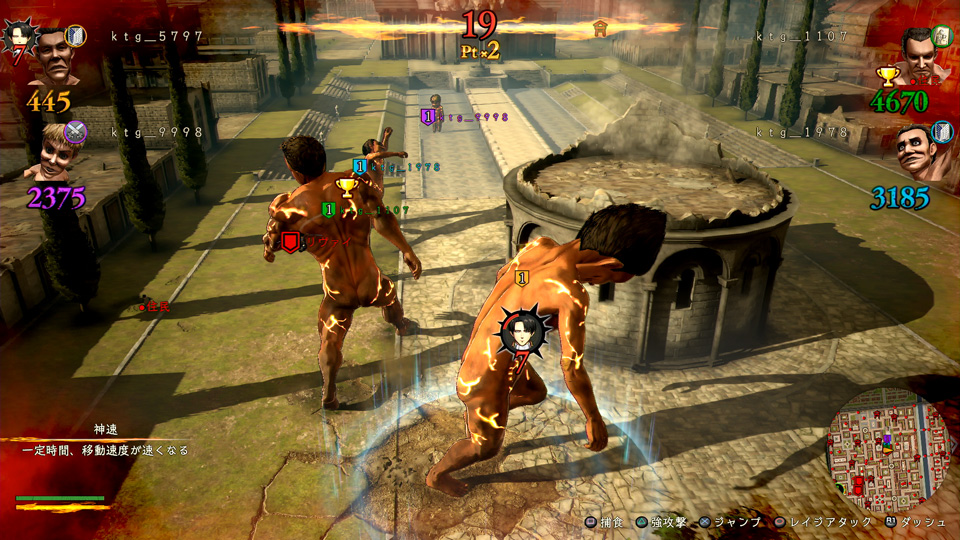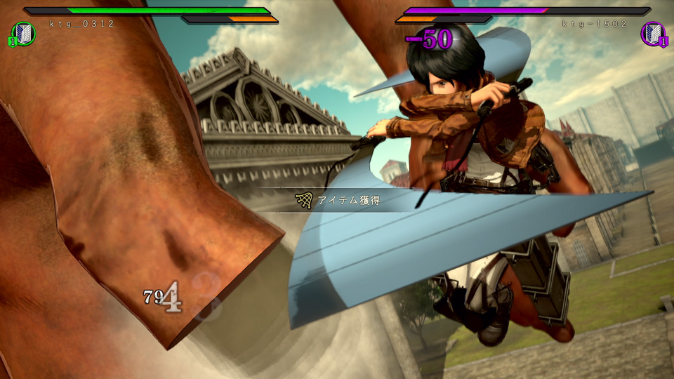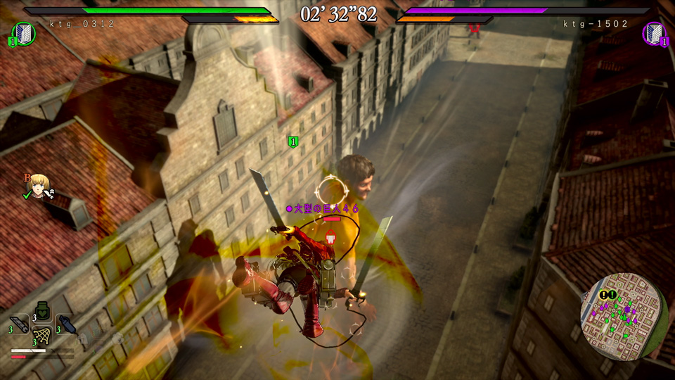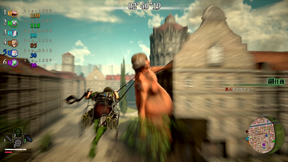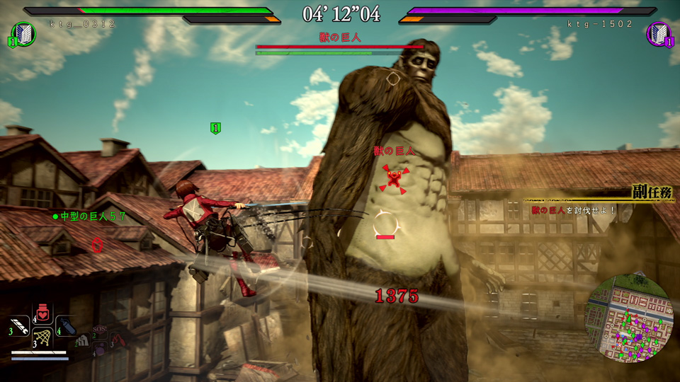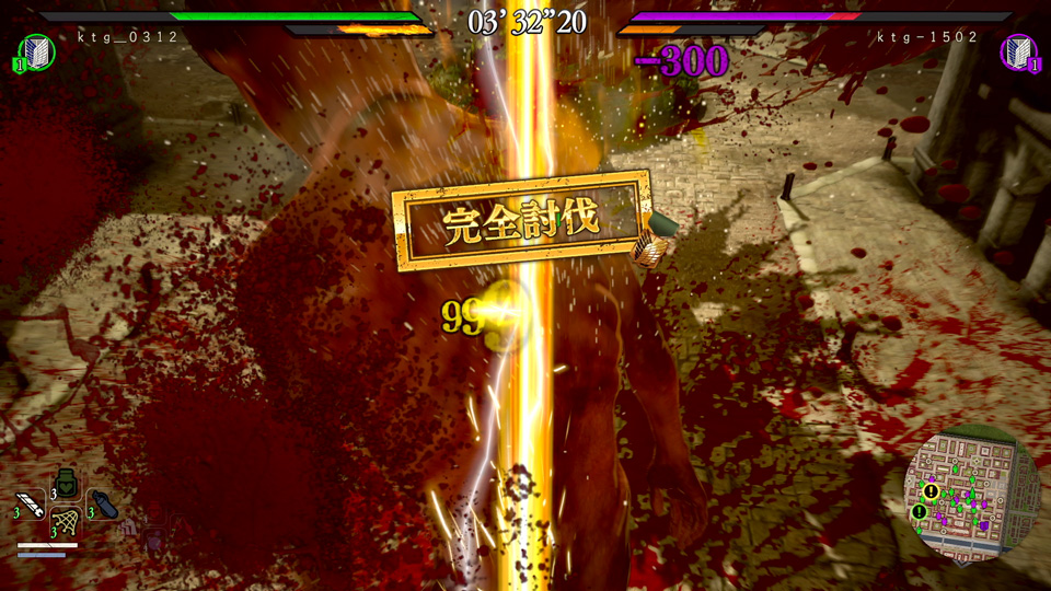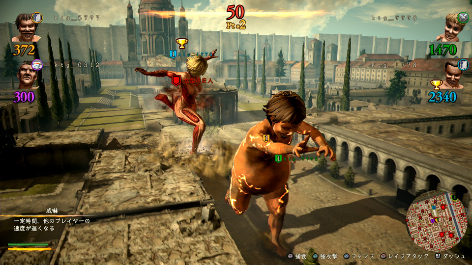 巨人を駆逐して相手のゲージ(画面右上)を削ろう
