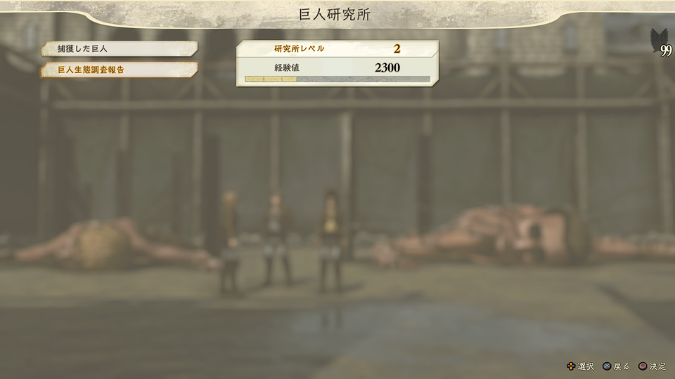 「巨人研究所」に「巨人生態調査報告」モードが追加され、「捕食」モードを練習することができる。