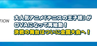 | すべてのテニプリファンに贈る、スペシャルマッチへの招待状。全国制覇に向けて戦い続けるリョーマたちの熱戦を見逃すな! |
