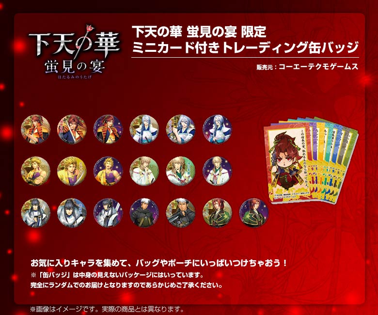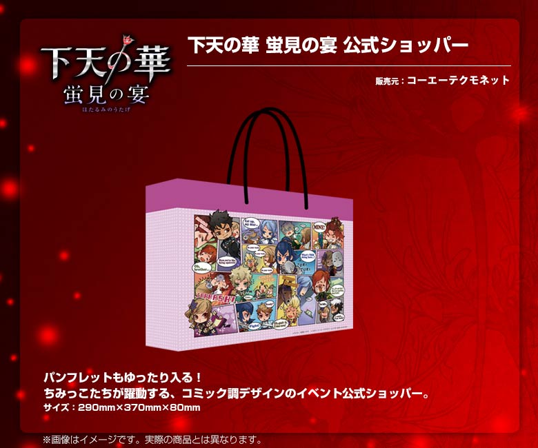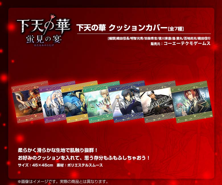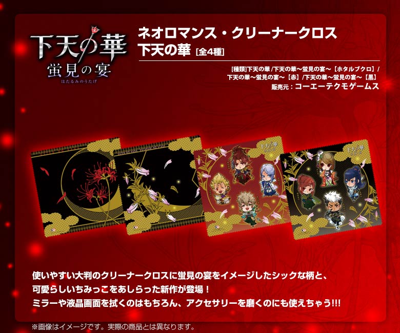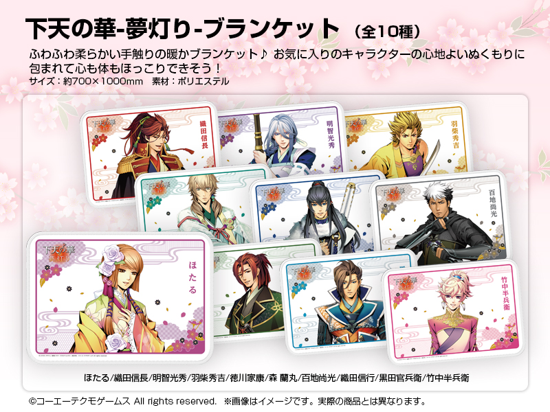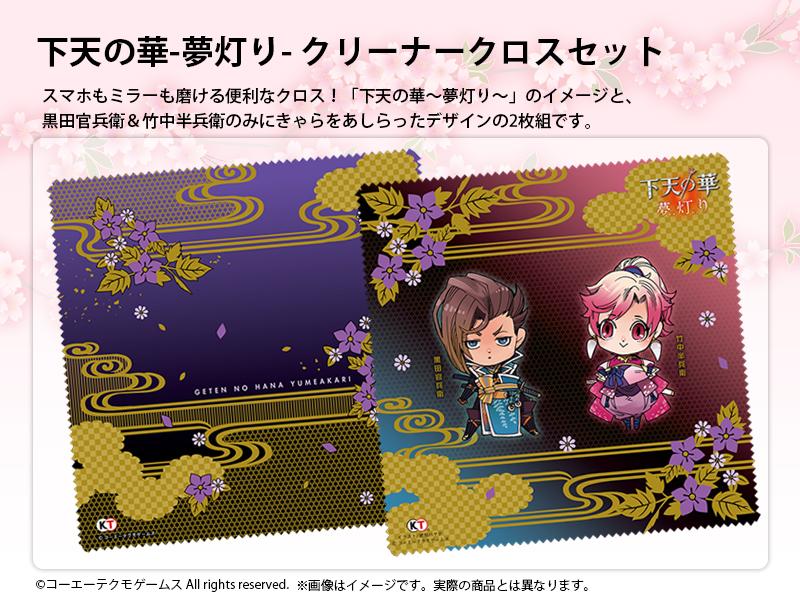 GAMECITYオンラインショッピングで『下天の華』『下天の華 夢灯り』関連商品を購入された方の中から抽選で計30名さまにオリジナルタペストリーを、先着300名さまにはオリジナルクリアファイルをプレゼントします。 応募期間:2014.4.17~5.6まで / 当選発表:2014.5.8※厳選な抽選を行い、当ページ上にて当選番号をお知らせいたします。 発送について:当選発表後、賞品の準備が整い次第、順次発送とさせていただきます。※タペストリー、クリアファイルともにご注文いただいた商品とは別送とさせていただきます。 クリアファイルプレゼントについて:"クリアファイル"は先着順(入金確認順)でのプレゼントとなります。300名様に達した段階で、自動的に終了いたします。なお、ページ上に終了告知がない場合でも、予告なく配布が終了している場合もございますので、あらかじめご了承ください。