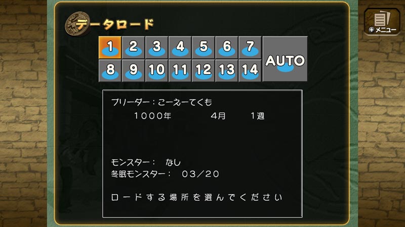 ゲーム内でモンスターデータを保存できる冬眠枠の数を10から20に増加!! - 育成メモ機能