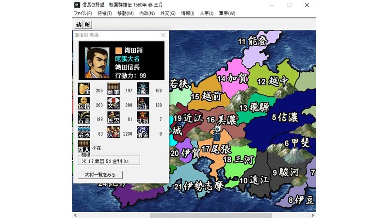 戦国大名となって個性あふれる数々の武将を配下に従え、戦略・戦術の限りを尽くして関東・中部をはじめとする全38か国を統一する、本格派シミュレーションゲームです。