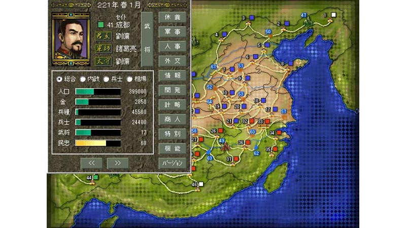 中国統一は国単位から都市単位に。配下の身分を「任命」して効率的に組織運営をしながら、46都市の統一を目指します。種類豊富な戦場では、歩兵、騎兵、弩兵などの部隊や兵士の「士気」、時間経過、天候変化が戦局に関わり、複雑な戦況をともなった戦闘が楽しめます。