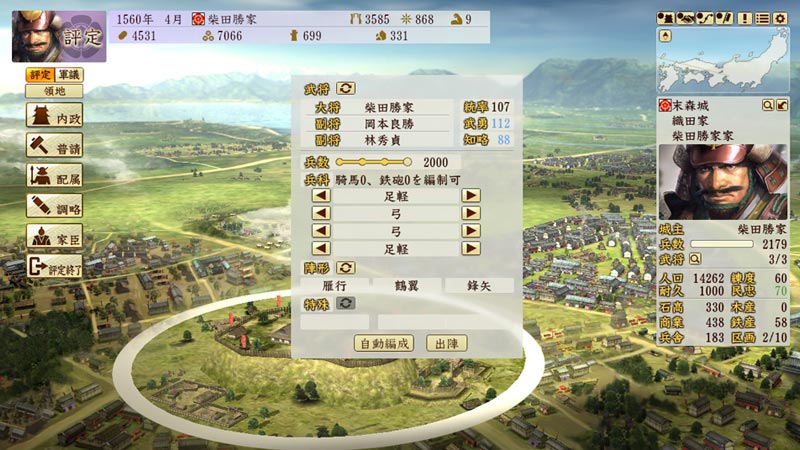 家臣から城主、大名まで、異なる身分で戦国武将の生涯を体験する「武将プレイ」を搭載。天下取りはもちろん、立身出世や下剋上にいたるまで、多様なプレイスタイルが楽しめます。