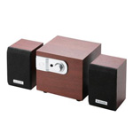 ■重量感と安定感のある木製キャビネットを採用し、コンパクトながら低域から高域までの豊かな音色を再現するサブウーファ付き2.1chコンパクトステレオスピーカ“小さい木のスピーカ"です。