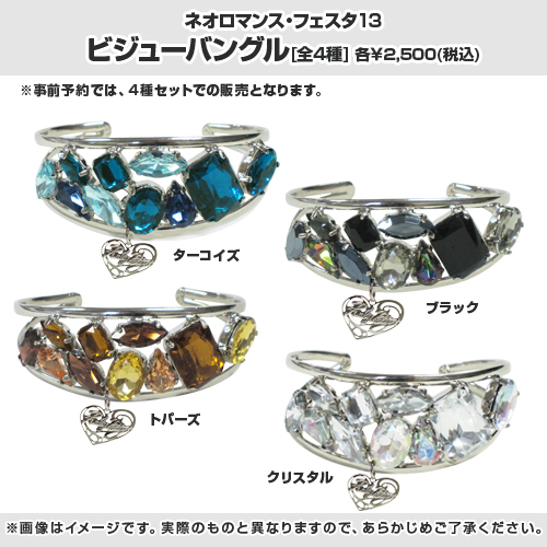 ビジューバングル(4種セット:ターコイズ/ブラック/クリスタル/トパーズ)[画像]