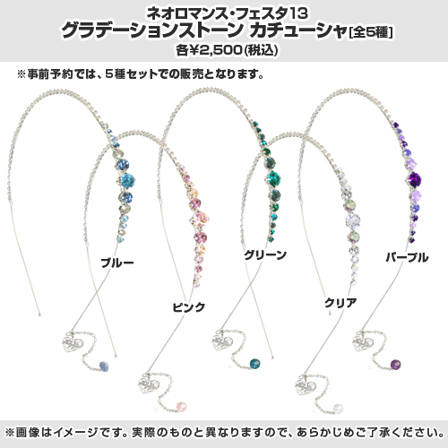 グラデーションストーン カチューシャ(5種セット:ブルー/ピンク/グリーン/パープル/クリア)[画像]