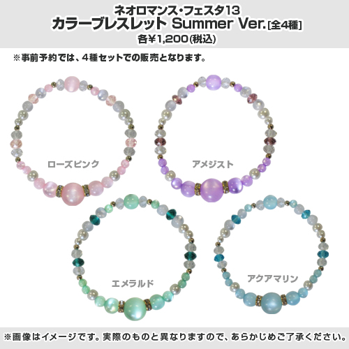 カラーブレスレット Summer Ver.(4種セット:アクアマリン/ローズピンク/エメラルド/アメジスト) [画像]