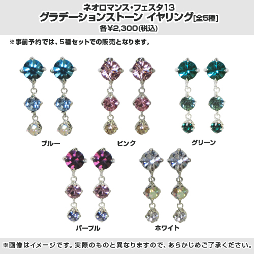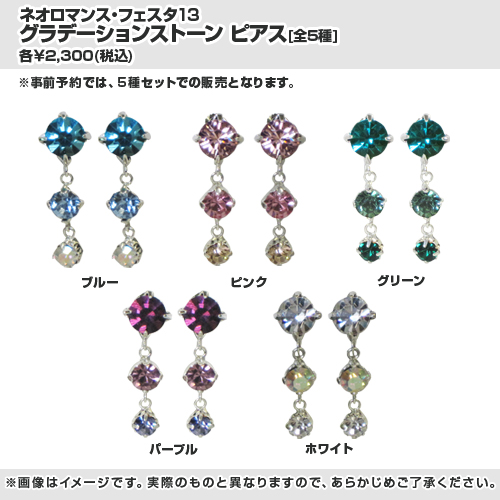 グラデーションストーン イヤリング(5種セット:ブルー/ピンク/グリーン/パープル/クリア) [画像]