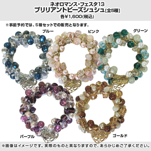 ブリリアントビーズシュシュ(5種セット:ブルー/ピンク/グリーン/パープル/ブラウン) [画像]
