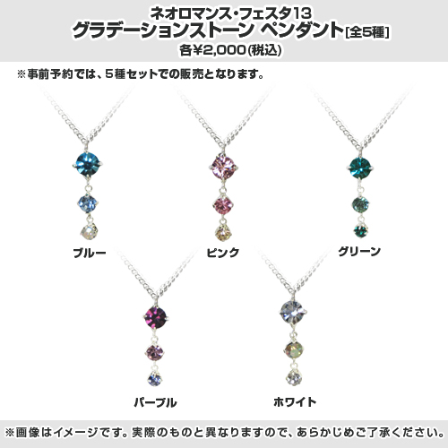 グラデーションストーン ペンダント(5種セット:ブルー/ピンク/グリーン/パープル/クリア)[画像]