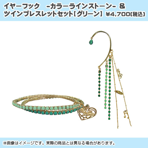 ◆イヤーフック -カラーラインストーン-& ツインブレスレットセット【グリーン】[画像]