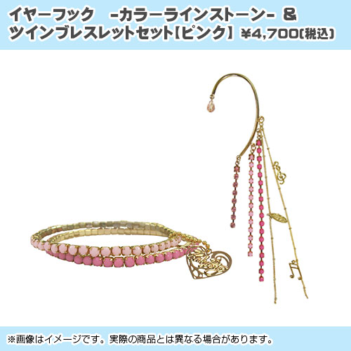 ◆イヤーフック -カラーラインストーン-& ツインブレスレットセット【ピンク】[画像]