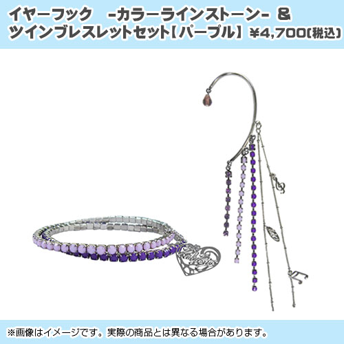 ◆イヤーフック -カラーラインストーン-& ツインブレスレットセット【パープル】[画像]