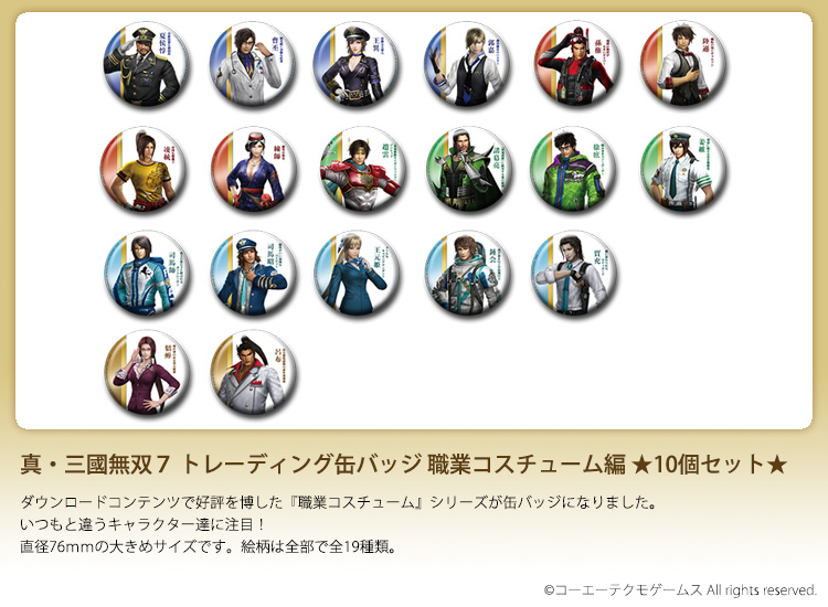※ランダム10個のセットです。中身は選べません。また、10個の中に同じ缶バッジが入っていることもございます。 (c)コーエーテクモゲームス All rights reserved.