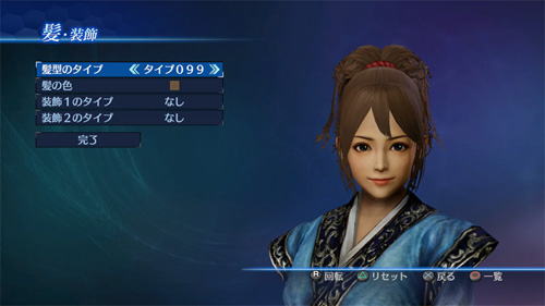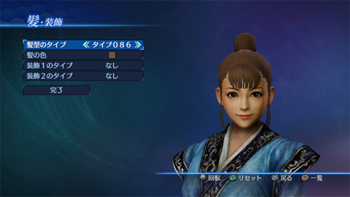 「エディットモード」の武将エディットで、追加の髪型タイプが使用可能になります。(男22点/女21点)