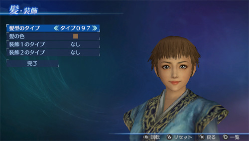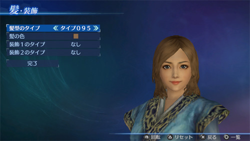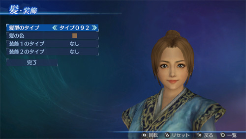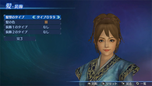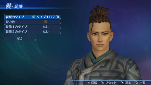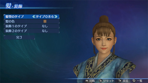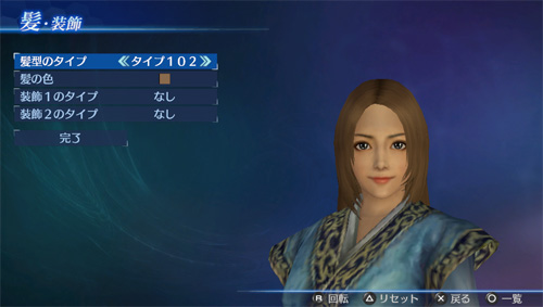 「エディットモード」の武将エディットで、追加の髪型タイプが使用可能になります。(男22点/女21点)