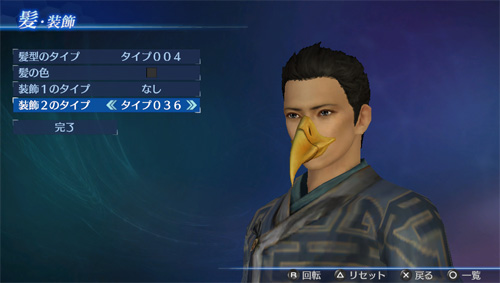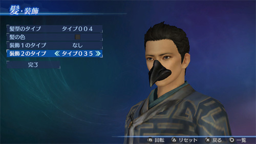 「エディットモード」の武将エディットで、男性用エディット防具「蔭文官一式」が使用可能になります。