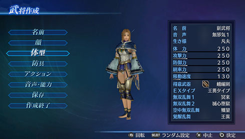 ※「武将」エディットでは新武器系統や一部のEX攻撃・無双乱舞が選択できません。また、“お気に入り”機能は使用できません。