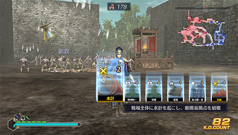 馬呼びや覚醒状態などのアクション操作は、前面タッチスクリーンを使って操作することができます。さらに、秘計はカード選択から実行まで全操作をタッチで行えるようになるなど、PS Vita版ならではの直感的な操作でプレイできます。