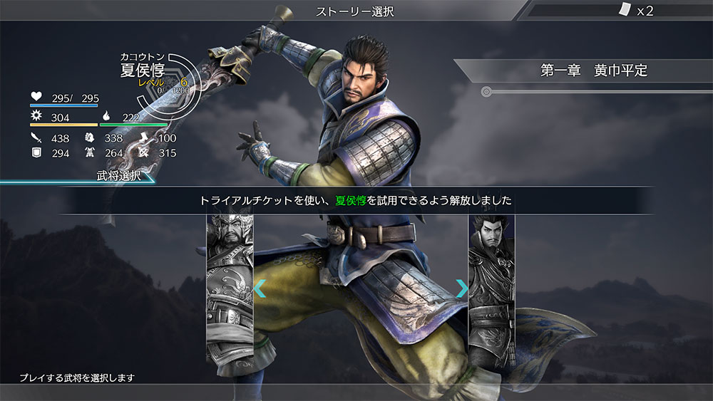 好きな無双武将を選択して体験プレイができます。