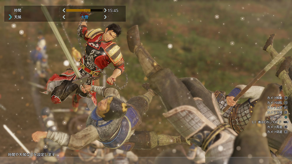 ポーズ中の画面からカメラの前後上下左右への移動や、寄り、引きといった操作ができ、同じ場面でも全く違った見せ方をすることができます。