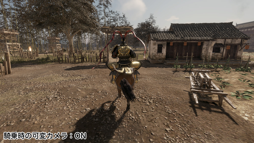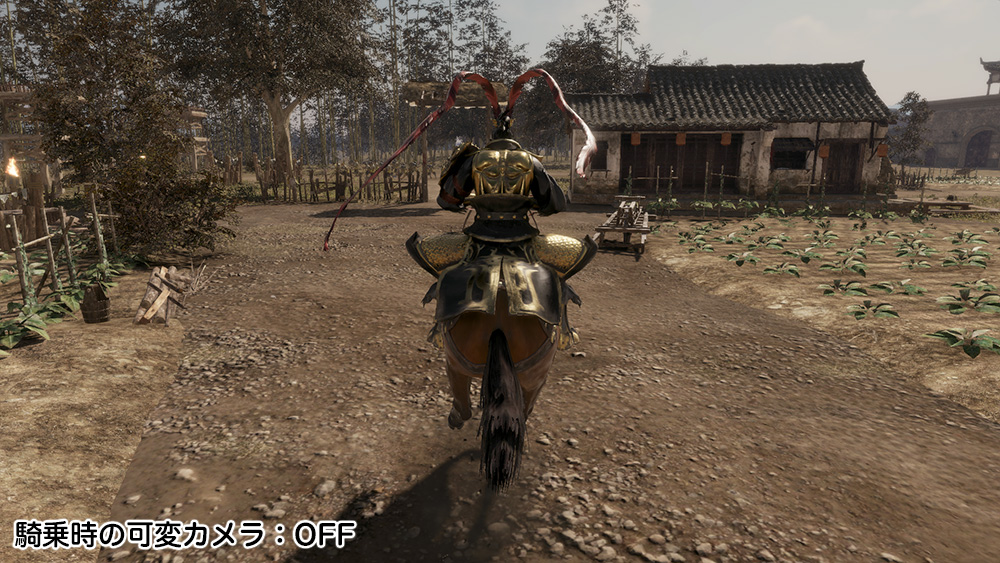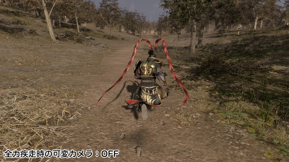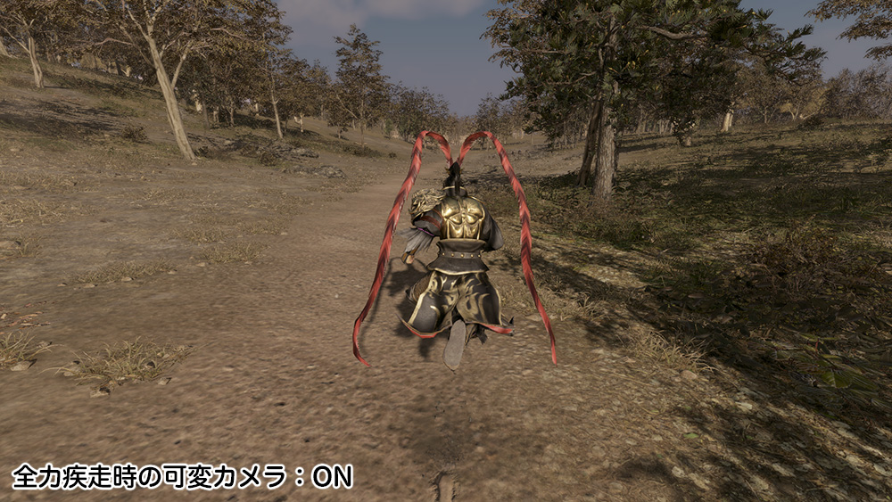 ゲーム中のキャラクターの状態に応じて、カメラを自動的に調整する機能をON/OFFすることができます。ONにすることで、納刀時、抜刀時、全力疾走時、騎乗時、全力疾走騎乗時に、カメラが変化するようになります。