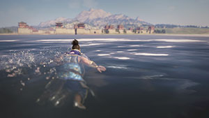 フィールド上に存在するオブジェクトや、目の前に広がる川などの地形の変化に応じてさまざまな行動をとることができる。「鉤縄を使って壁を登る」「大河川を泳ぐ」といった移動に関する行動のほか、「油壷を火矢で誘爆」「壁を使って三角跳び」といったアクション、さらには「水辺での釣り」まで、インタラクティブアクションによってフィールド上での自由度がさらに高くなる。