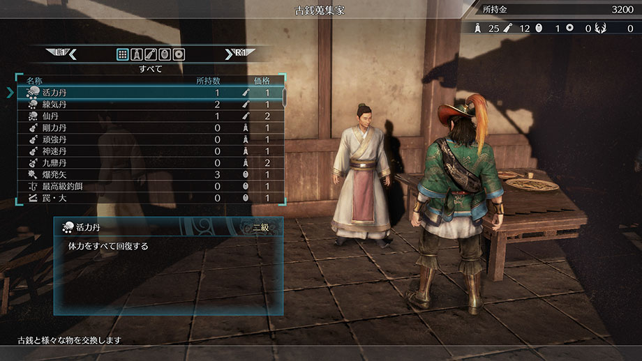 獲得した「狩猟ポイント」に応じて、好事家から古銭や宝玉といった報酬を受け取れる。
