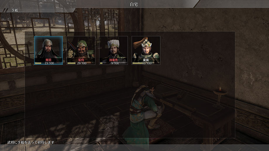 隠れ処を購入すると、交流のある無双武将に招待状を送ることができる。