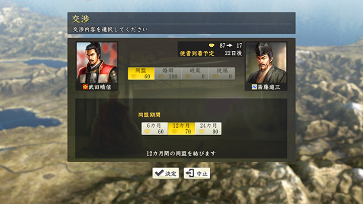 また、周辺勢力と同盟を結んだり、援軍を要請できるよう根回ししておくなど、多面作戦の重要な鍵を握る「外交工作」も勝利への布石となります。