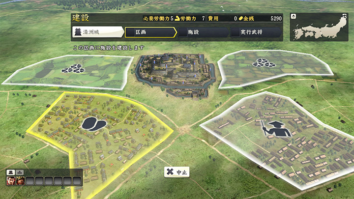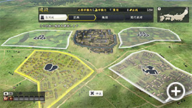 農業重視の大穀倉地帯にするか、商業重視の大商業都市にするか、思い思いの城下町をつくり、理想の天下をめざすことができます。