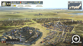 勢力拡大の基礎となる城下の町並みは、田畑や商家などが建ち並び、プレイヤーの方針に応じてリアルに成長・拡大していきます。