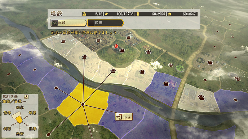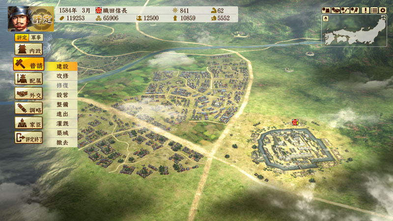 本作では「信長の野望」シリーズ初の「武将プレイ」を導入するにあたり、内政システムに「箱庭内政」を採用。与えられた領地の地の利や、自家の特色を考慮しながら、自分だけの領地開発をお楽しみいただけます。また、家臣、城主、大名とプレイヤーが選択した武将の身分次第で、内政の規模や内容が変化していくため、ゲームを通じて立身出世のリアリティを体感できます。