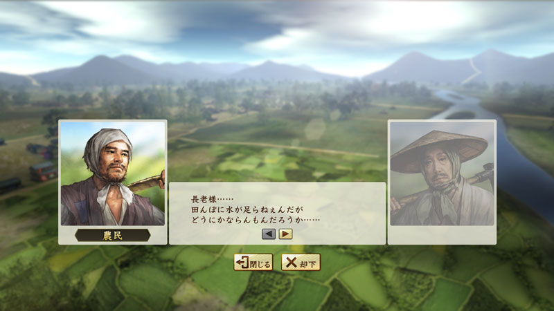 自領で暮らす民や他の武将から依頼(御役目)を受けることがあり、この「御役目」を解決することで、民忠を高めたり、武将との友好関係を築いたりすることができます。