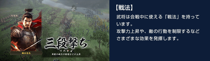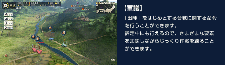 状況に応じた陣形、戦法などを駆使することで、総大将として勝利をつかみ取る楽しみを味わうことができます。