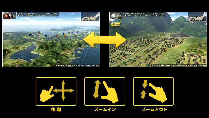 内政、合戦などが直感的に操作可能となり、没入感もますますアップ!