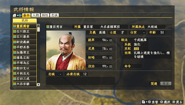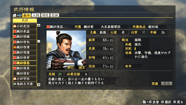 「各種設定」の「BGM変更」で、評定曲や戦略曲を歴代の信長の野望タイトルで使用されていたBGMに設定できます。