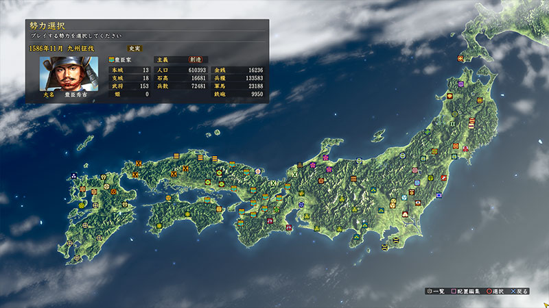 羽柴秀吉は「豊臣」という「氏」の下、天下統一事業に邁進する。中国地方の毛利家を同盟者とし、四国の長宗我部家を屈服させる。残る敵は九州の島津家、関東の北条家、奥羽の諸大名。