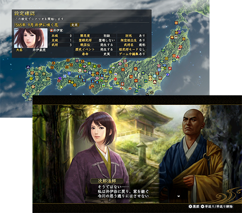 話題の「井伊直虎」をテーマにしたシナリオが新たに加わります。本作では井伊直虎を大名としてプレイでき、井伊家のイベントや戦国伝(フリークエスト)も追加。
