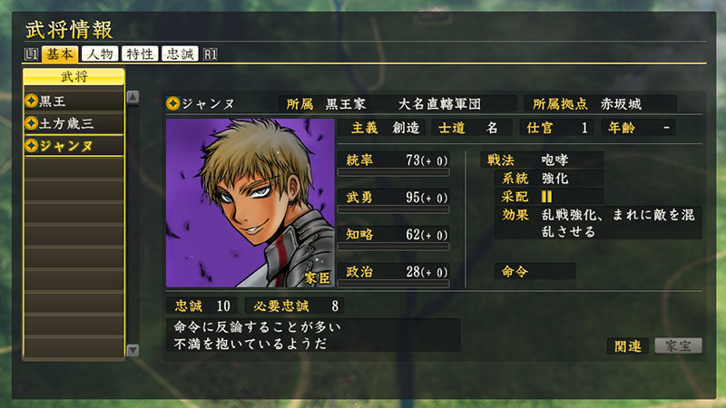 ゲーム内の「史実武将編集」から、それぞれの武将の顔CGとして設定いただけます。
