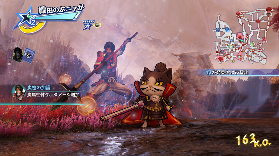 プレイヤーと真田幸村の攻撃に炎属性を付与し、攻撃した敵を炎上状態にすることができる。