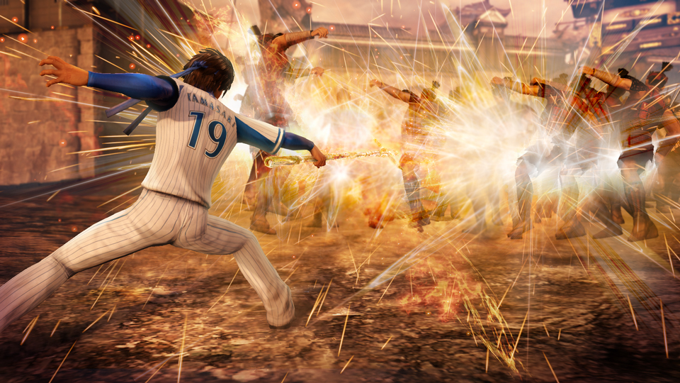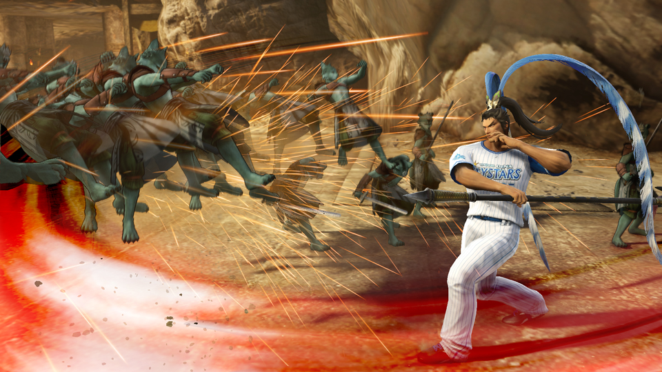 コラボレーション第1弾では、本作登場キャラクター「呂布(「真・三國無双」シリーズ)」、「真田幸村(「戦国無双」シリーズ)」、「有馬一(「遙かなる時空の中で」シリーズ)」が、それぞれ横浜DeNAベイスターズの人気選手3名のユニフォームを身にまとい戦うことができる特製衣装ダウンロードコンテンツを配信!