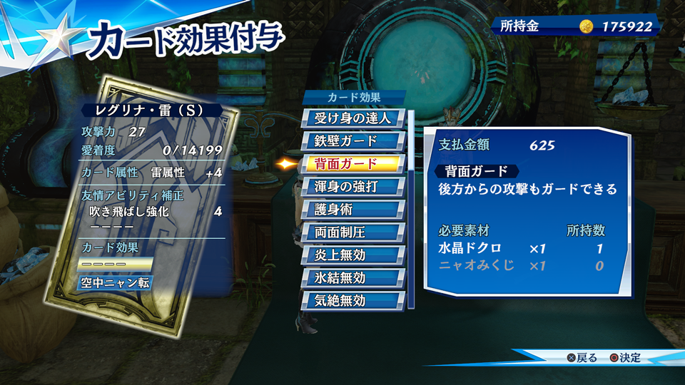 また、カードを分解して、カード効果を付与するための素材に変えたり、その素材を売却したりすることも可能です。