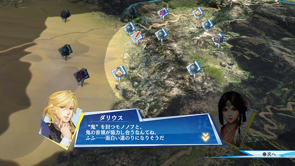本作では、ワールドマップ上を移動しながら戦闘を進めていきます。ここには、さまざまなバトルやイベントが配置されています。